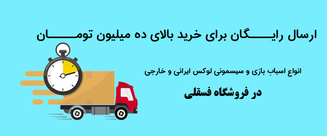 ارسال رایگان، با خرید بالای ده میلیون از فروشگاه سیسمونی و اسباب بازی فسقلی