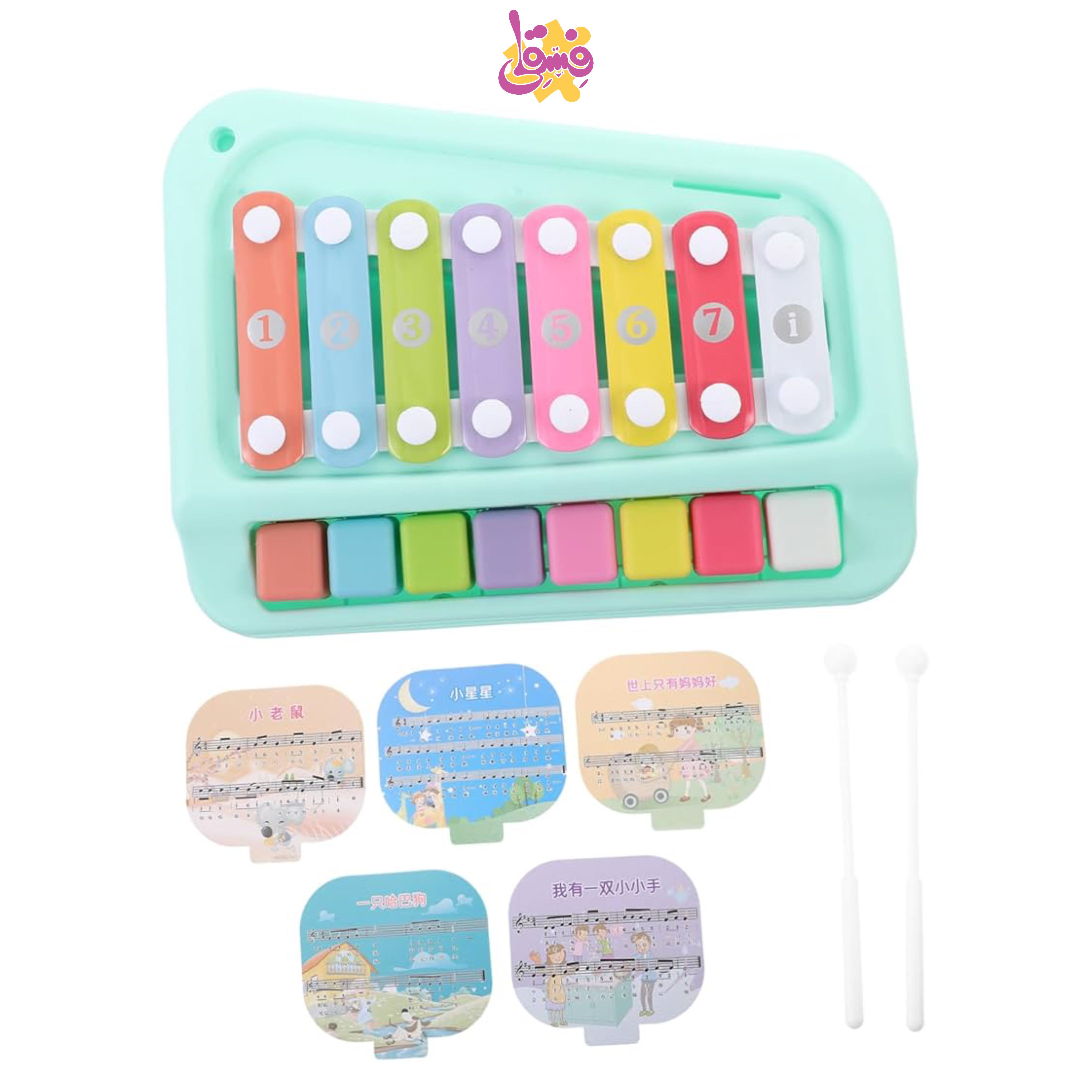 دکمه ای که عکس موزیک روی آن است موزیک هایی متفاوت پخش می کند.دکمه ی بوق صدای بوق متفاوت را دارد.این اسباب بازی باعث آشنایی با رنگها,آشنایی با نت های موسیقی,هماهنگی دست و چشم و تقویت بینایی و شنوایی کودک شما میشود.